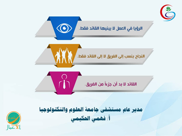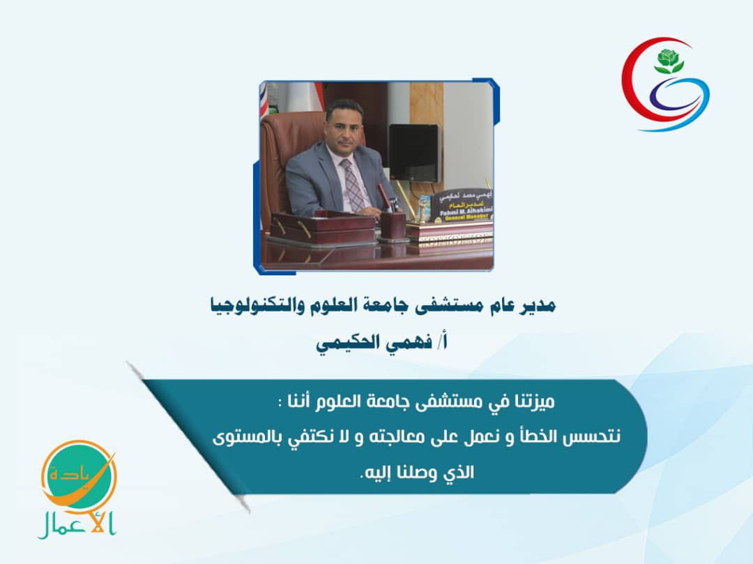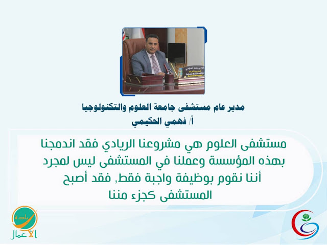 مبادئ العمل عند الاستاذ فهمي الحكيمي مدير مستشفى جامعة العلوم والتكنولوجيا |