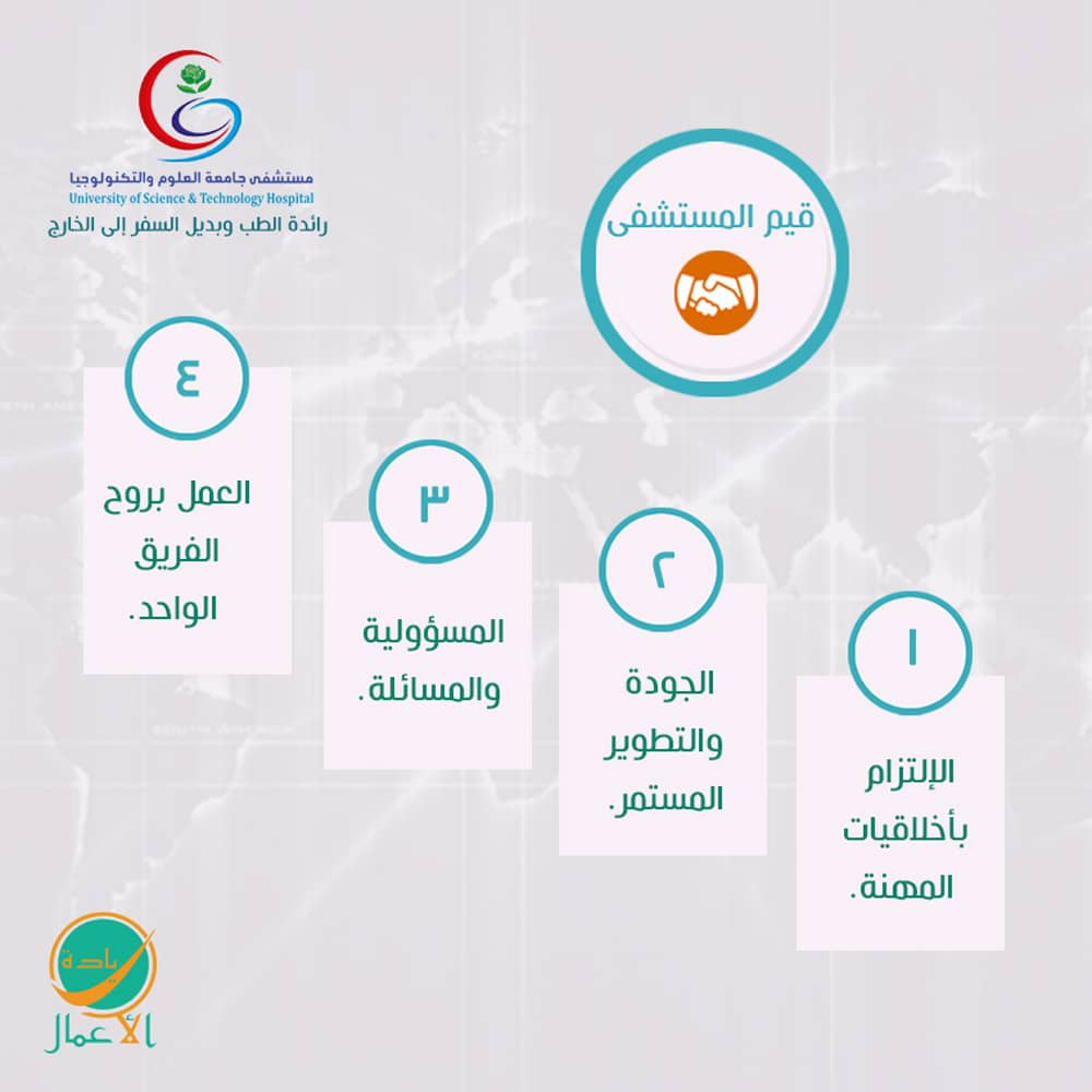 القيم  والمبادئ لمستشفى جامعة العلوم والتكنولوجيا
